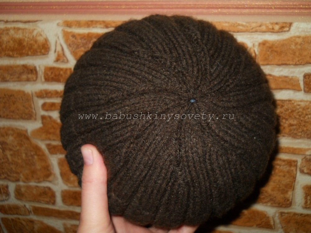 Эта шапочка связана из тонкой акриловой нити цвета черного шоколада. На объём головы 56 см. Связана она в круговую на 5х спицах. Для вязания нам понадобиться :